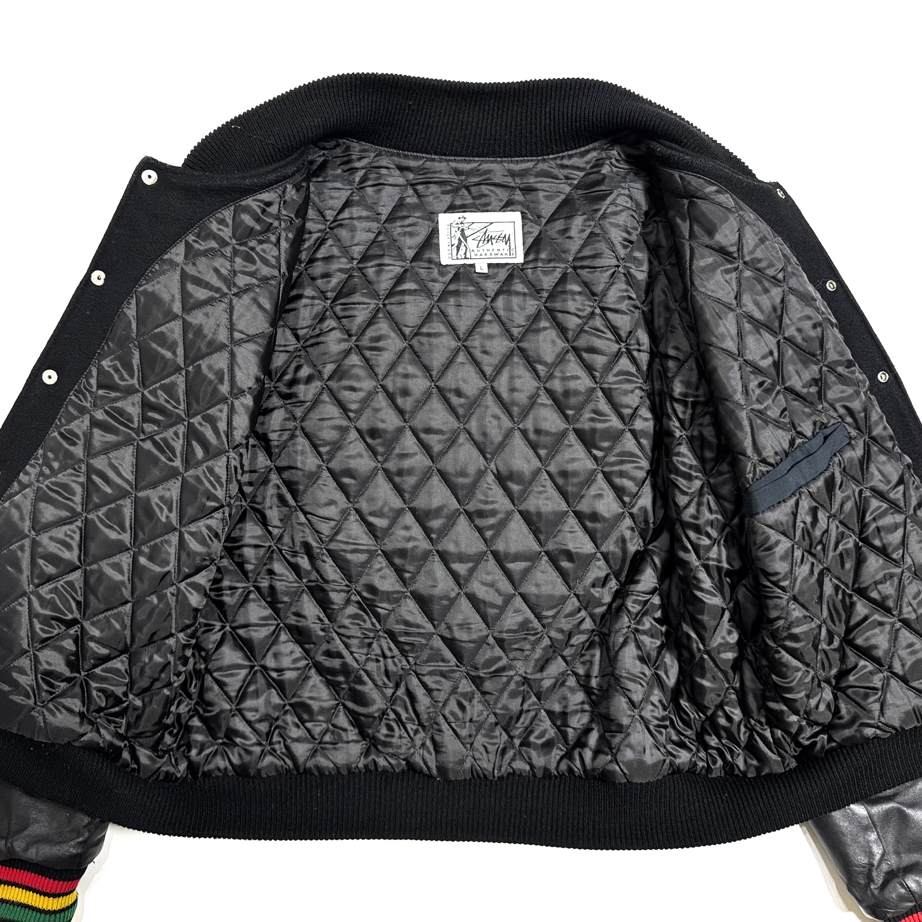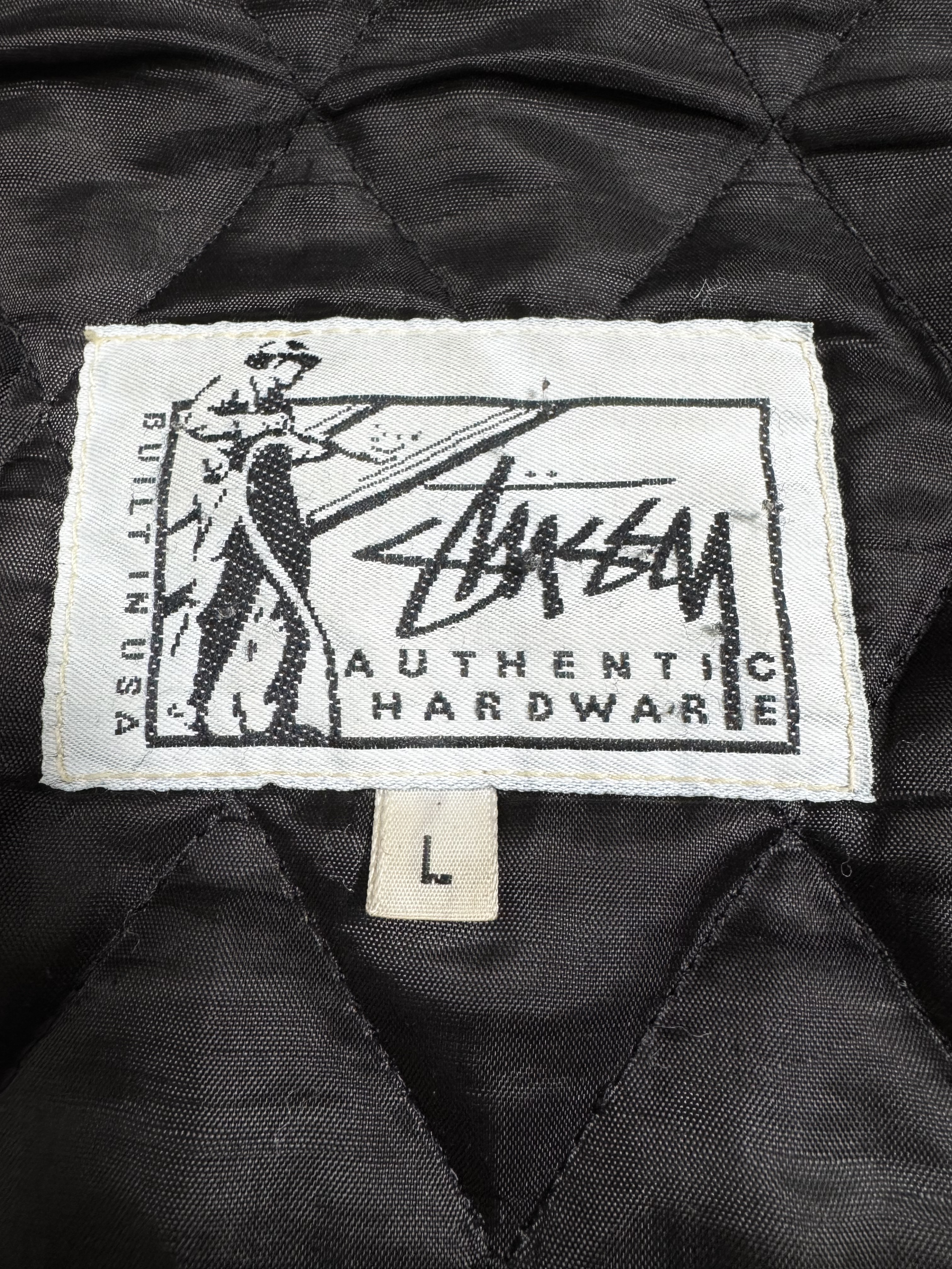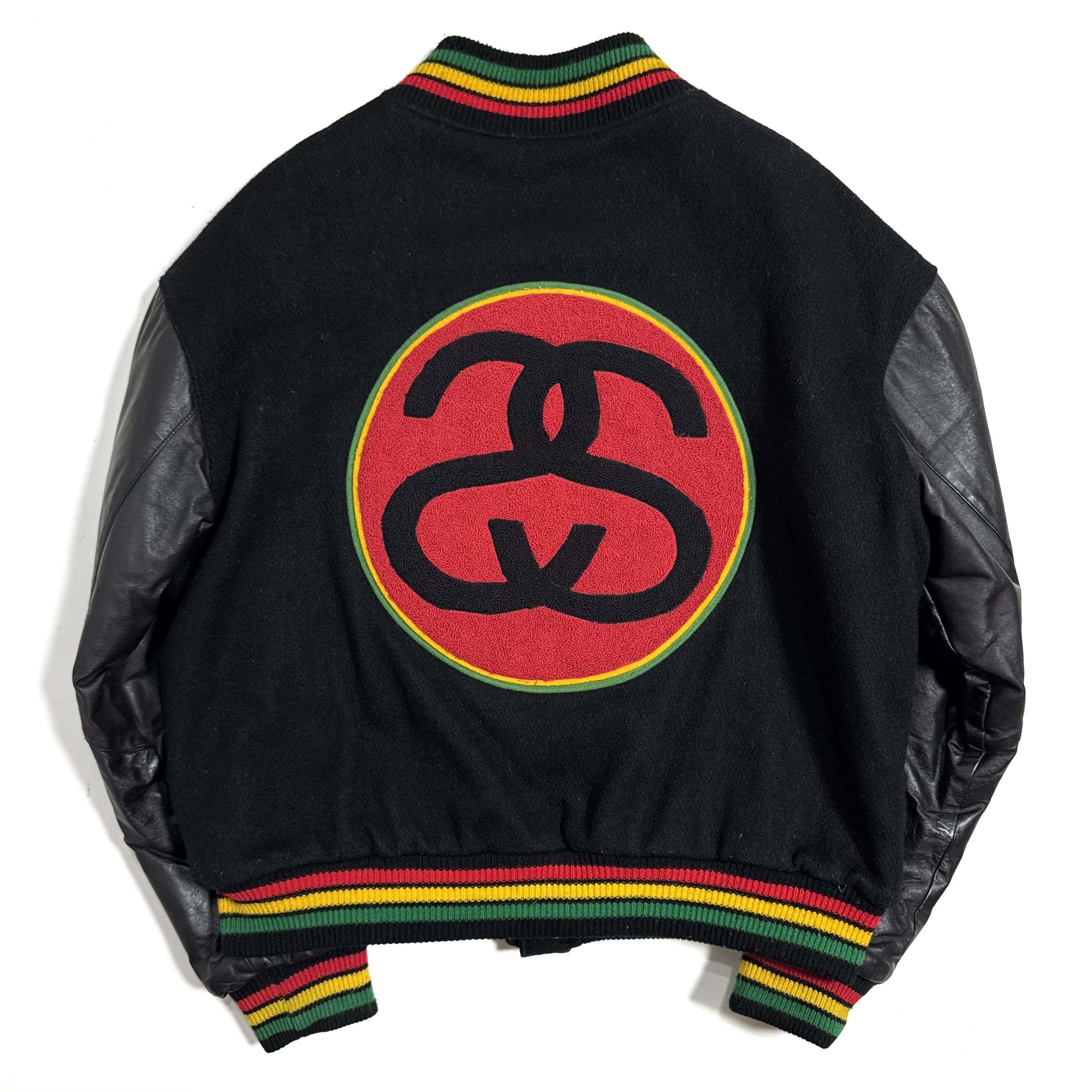 ~90s STUSSY "CHANEL" VARSITY JACKET.
